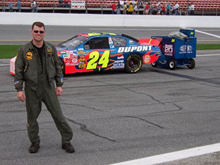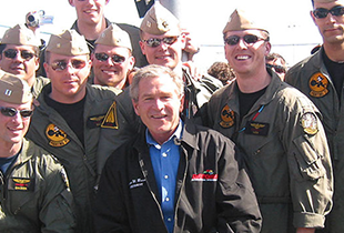 “Tomcatters” of Fighter Squadron VF-31 meet President George W. Bush during opening events at the 2004 Daytona 500. U.S. Navy F-14D “Tomcats” performed the fly-by during the opening ceremonies.